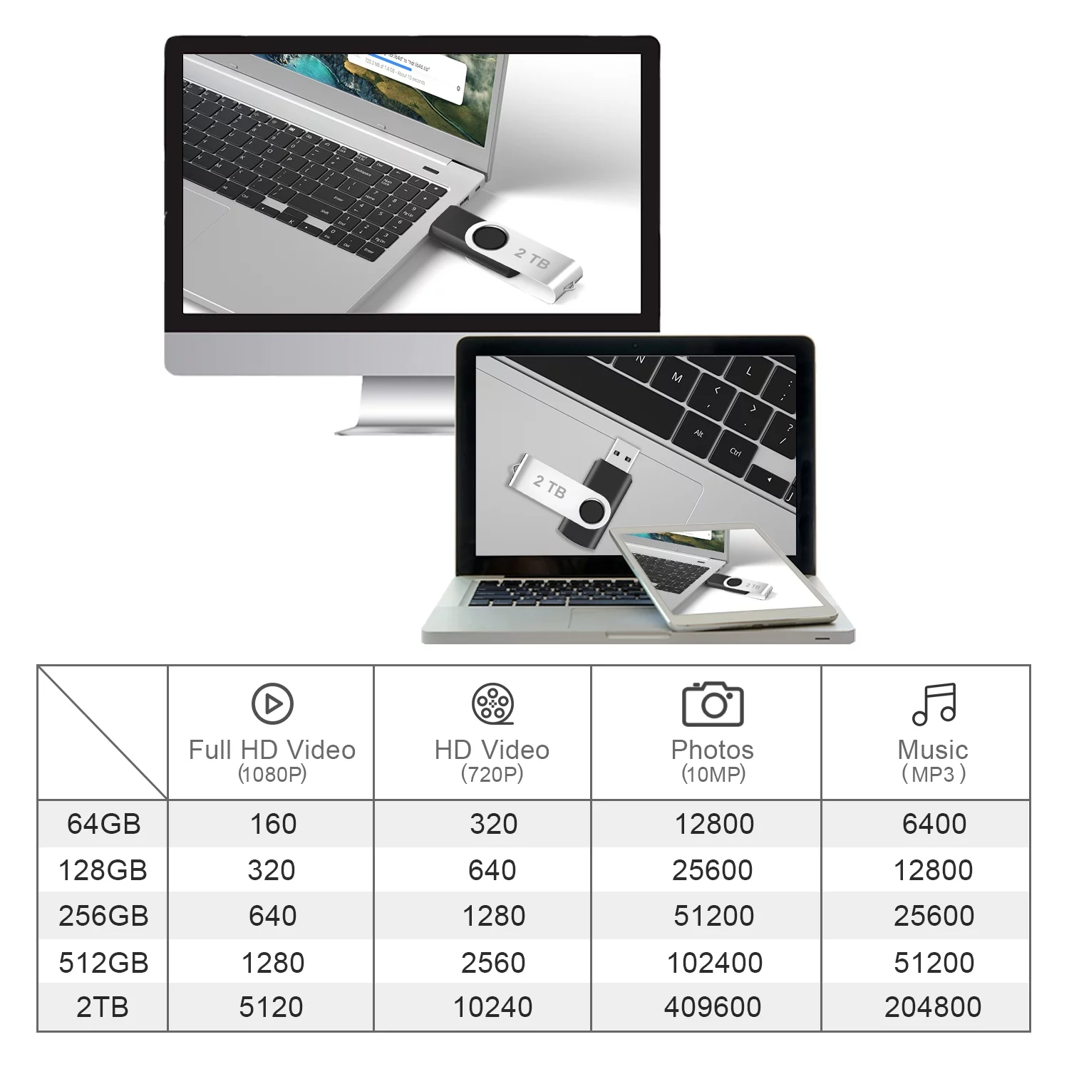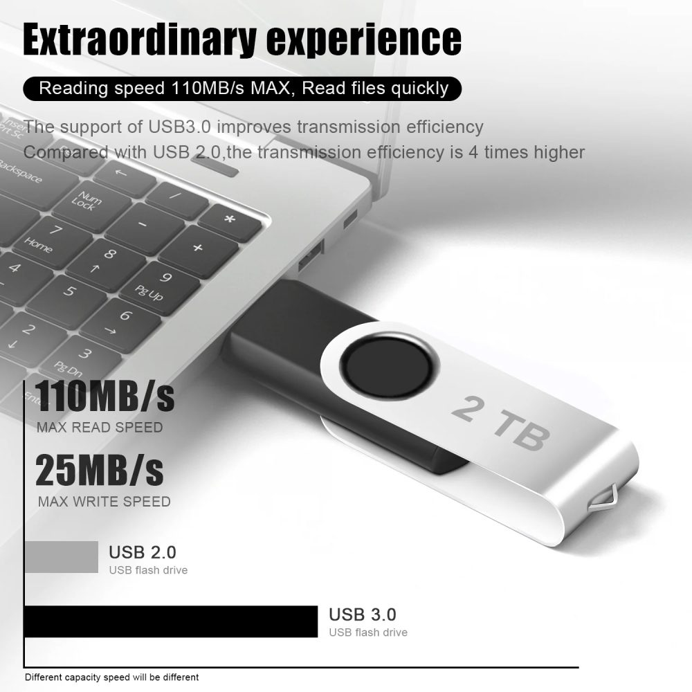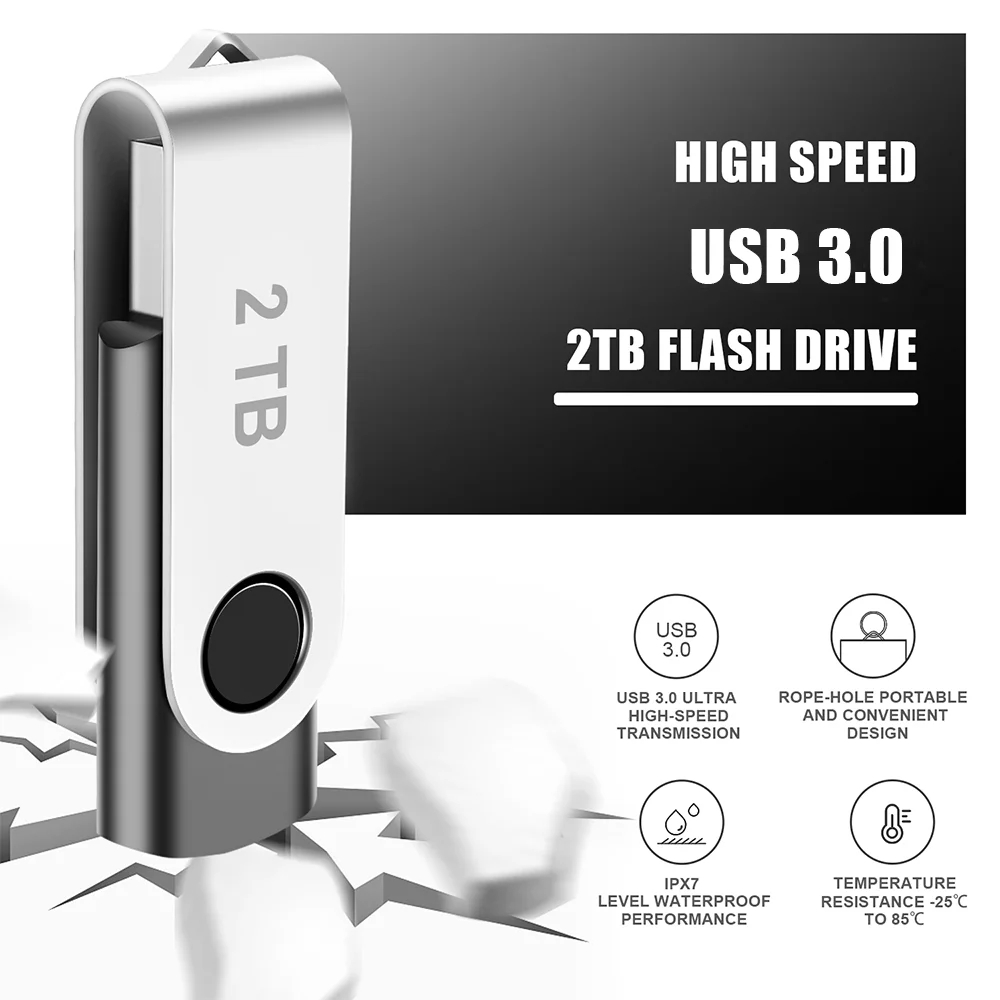 - High Quality – USB Flash Drive 2TB features durable and rugged ABS and Metal housing body with rotated design.It has excellent water resistance, magnetic resistance, high-temperature resistance, and X-ray resistance, thus ensuring that its service life far exceeds other similar products, which makes you store your data with more confidence.