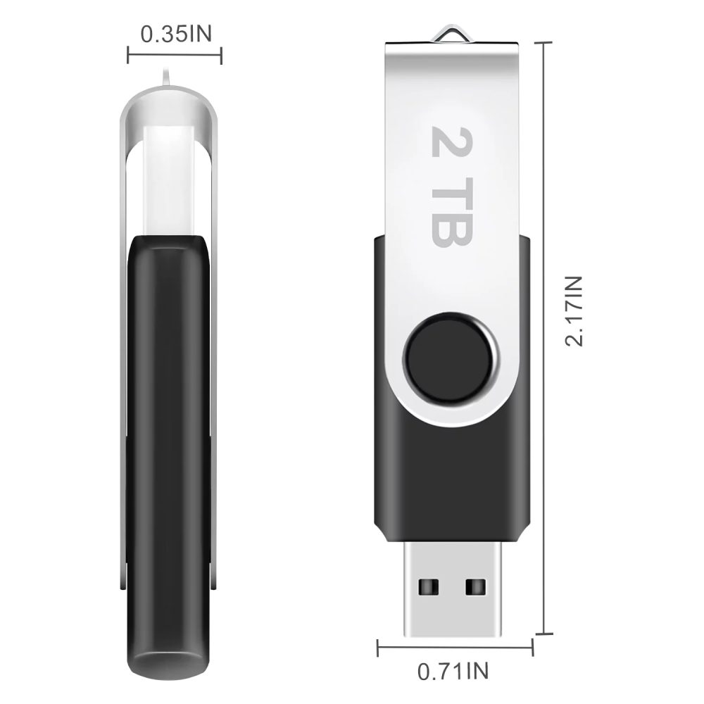 - Compact and Portable Design – The size of the Thumb Drive 2TB is 2.17*0.71*0.35 in, and it makes it easy to slip into your pocket. The end of the Fold Thumb Drive has a loop that can easily be attached to your key chain or lanyard, using to help keep from losing, and for easy carrying.