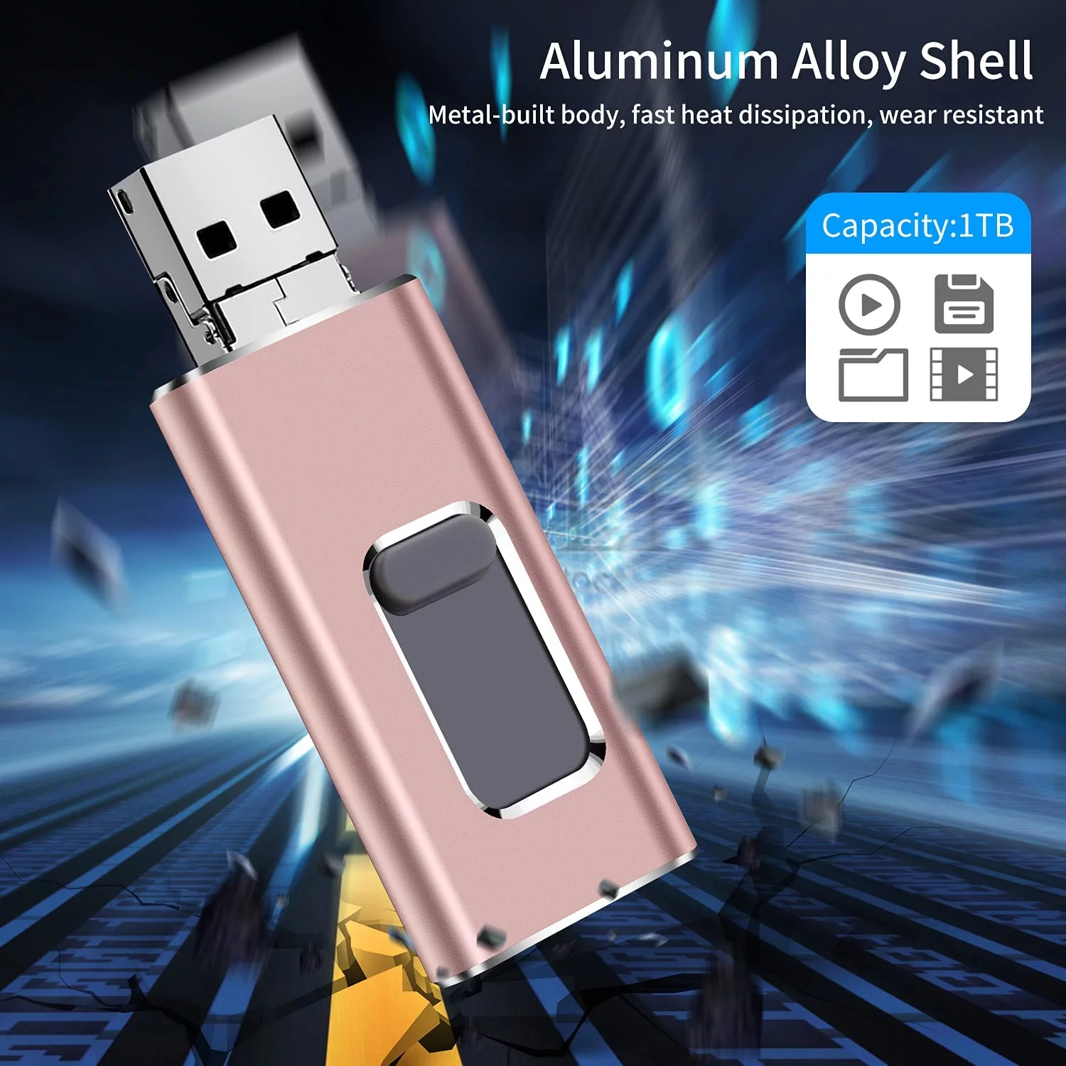 USB 3.0 Flash Drive 1TB Intended for Phone, USB Memory Stick External Storage Thumb Drive Photo Stick Compatible with Phone, and Computer(Pink 1000GB)